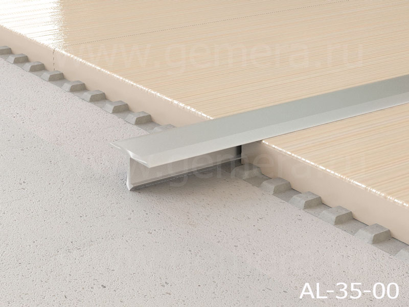 Профиль Т-образный плоский для стыковки плитки или ламината. Отполированный блеск порога легко сохраняется при постоянной ходьбе, и периодическом протирании порога специальными средствами.